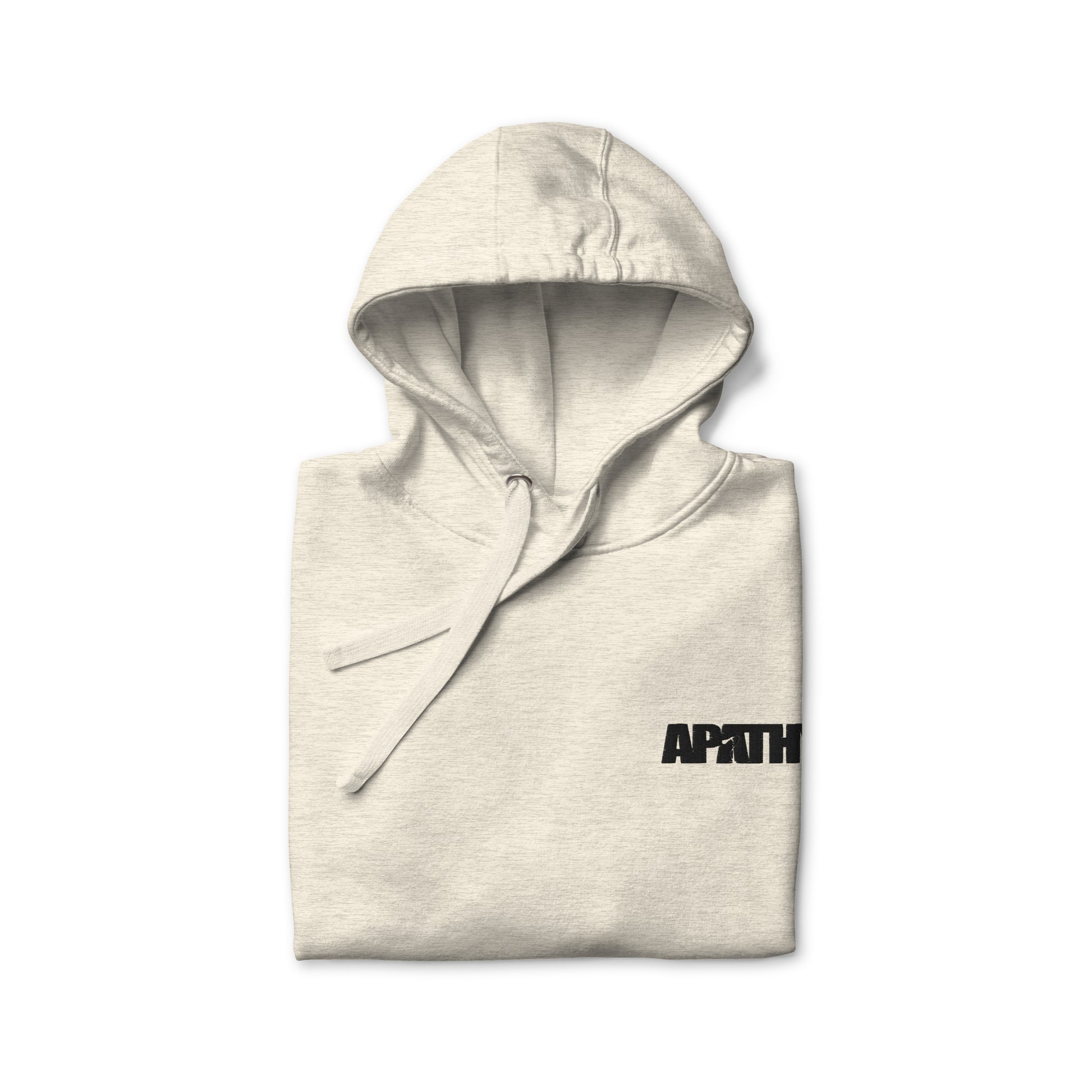 Commemorating the 20th anniversary of Eastern Philosophy, this premium hoodie pairs a subtle front hit with a fully realized back graphic. Apathy’s logo is embroidered over the left chest as a clean badge, while the rear features the artist/title panel with the album’s full tracklist printed beneath, bringing the record’s identity front and center.